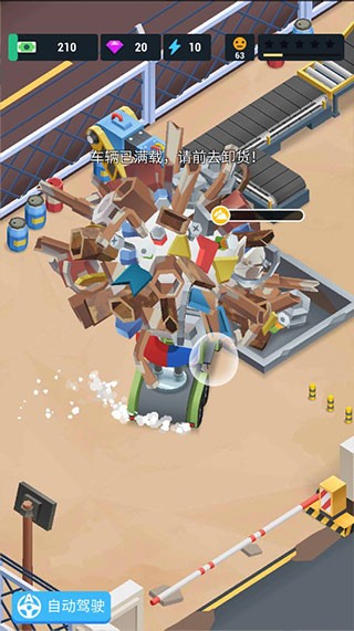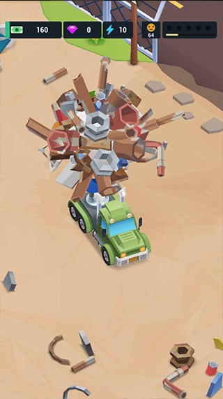 2、玩家通过拖动屏幕,控制车辆收集废料;