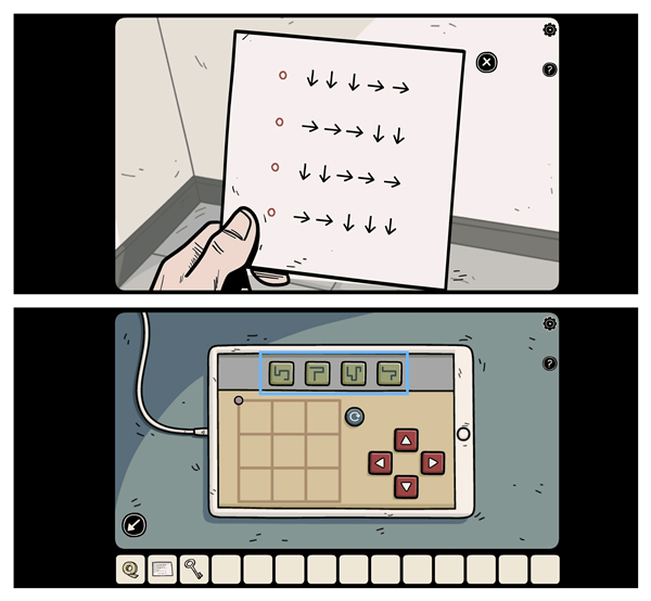 回到一楼将数据线插入平板,根据提示纸的步骤依次点击方向键获得四个符号。