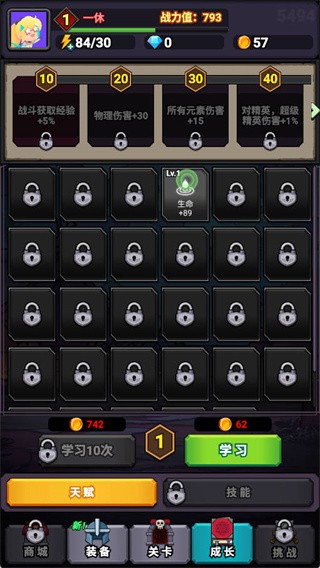 每10级解锁高级天赋位(可用钻石开启)。