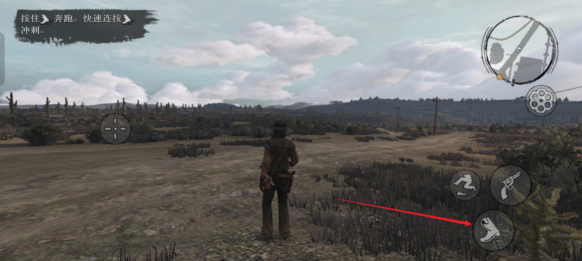 3、按住跑步按钮可以进行奔跑,快速连按可以进行冲刺