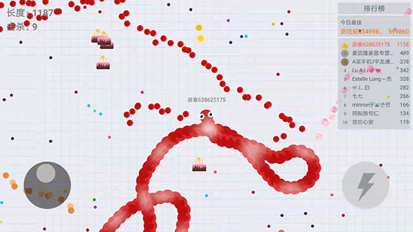 若非常不幸,你的蛇蛇被人围住了,不要灰心!继续绕下去,并且尽量往对方蛇蛇的头部方向移动,尽力地绕最大圈的移动。对于大蛇蛇来说,他的命更加值钱!也可以联合你的小伙伴一起限制大蛇蛇的绕圈路线,逼迫他失误。若是可以反杀,则可以大大壮大你的长度!