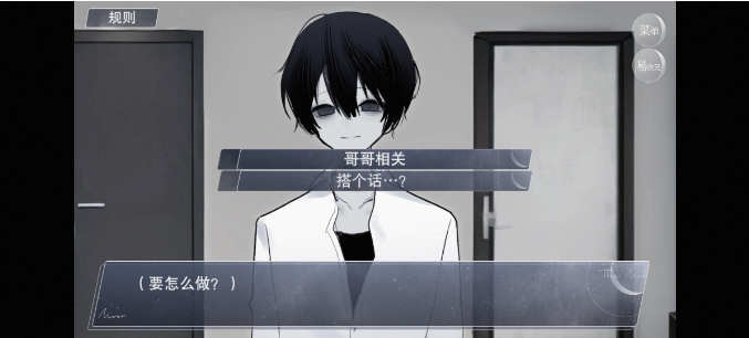8.回家后哥哥问有没有进他房间,选择“是的......对不起哥哥”,哥哥不会生气,随后哥哥会去处理小丑,这一部分都是自动的剧情。吃饭时,选择问哥哥第一项“......为什么是我呢”和第三项“哥哥......还记得小时候的事吗”,然后是剧情