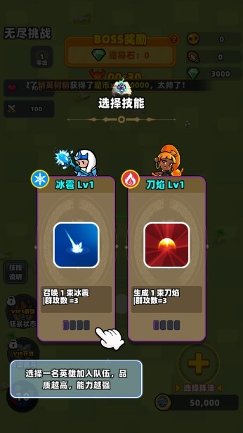 1、每局战斗开始前,神秘魔法阵为你随机呈现数位可选英雄。