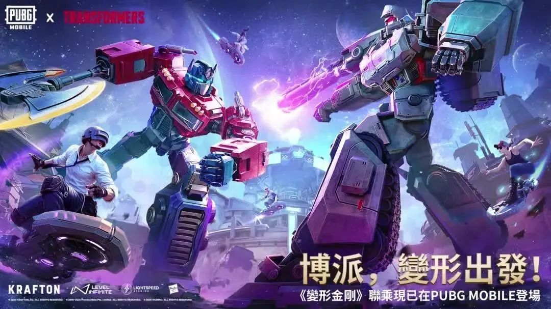 《PUBG MOBILE》×《变形金刚》高燃联动开启!擎天柱与威震天将撕裂次元,降临PUBG MOBILE战场!我们相信,各位玩家不仅能体验驾驶机甲载具风驰电掣的速度感,更能通过变身玩法化身钢铁巨人释放毁天灭地的力量!这不仅是游戏内容的迭代,更是一场变形金刚粉丝与PUBG MOBILE玩家共同狂欢的盛宴,一场跨越次元的传奇碰撞!愿每位玩家都能在枪火与钢铁的交织中,书写属于自己的战场传奇!