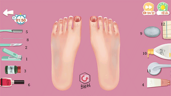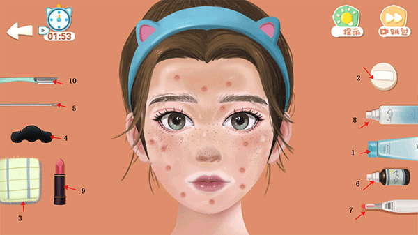 3、小编以脸部清洁关卡为例,给大家整理了顺序步骤。