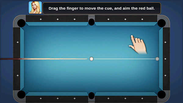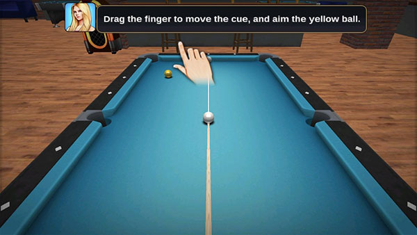 2、用手指滑动屏幕来移动白球,对准黄球调整角度。