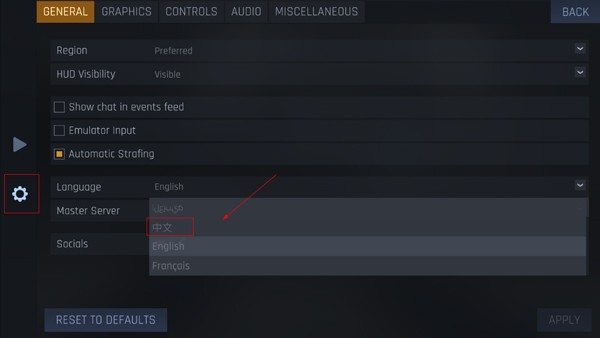 3、最后点击【APPLY】应用,返回游戏就可以看到语言设置成中文了。