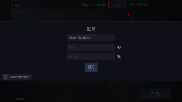 1、在大厅主界面点击正上方【账号】,并自行设定账号、密码(账户ID无需填写);