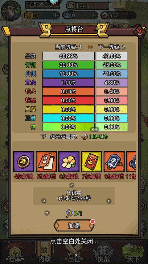 3,发展壮大自己的城池,合理利用各种物资来升级建筑物等级。