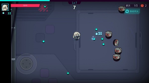1、玩家可通过操纵虚拟摇杆来控制角色移动,点击攻击按钮,向怪物开火(可以切换为自动开火)。击杀怪物会掉落材料,拾取材料能够获得金币和提升队伍等级。