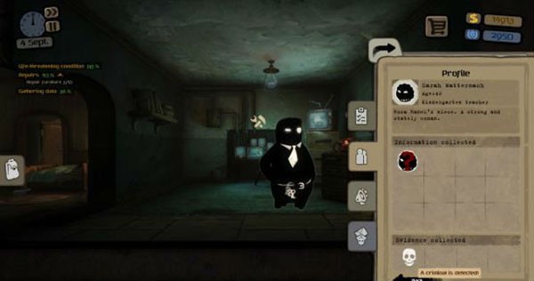 上级要你去收集2号房雅各布的情报,由于中期急需钱,所以搜集到1个信息后不要立刻报告,先把他喝酒,赌博,打人,抽烟四个特性搜集全再建议档案,得到400。得到400后,上级要你驱逐雅各布,发现他制毒后不要报警,先写敲诈信(钱的主要来源之一)之后拿到1000后再发现他一次制毒,报警。