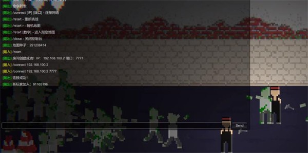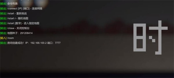 3、将出现的房间IP和端口信息发给你的好友,让他在控制台界面输入/connect ip地址和端口就可以连接了。