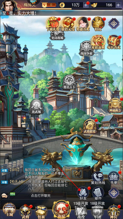 1、首先在游戏的主页面中找到好友按键,如图所示。