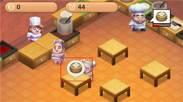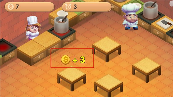 1.在规定的时间内容,完成所有的饭菜,顺利过关