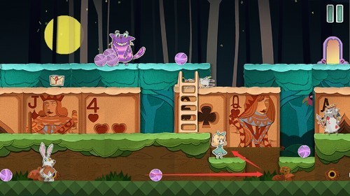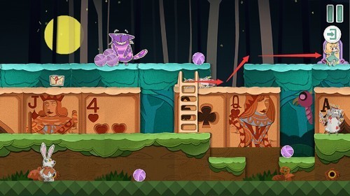 扑克兵会被球砸晕,趁着球的间隙快速移动到右上角的门里。