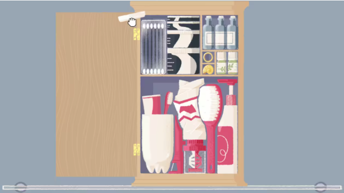 3、所有化妆品放进去之后,剩下粉扑无处安放,点击粉饼盒子打开。