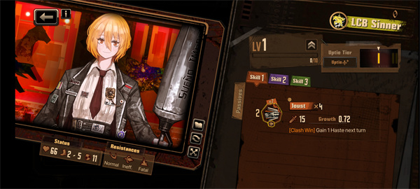 然后再说一下角色,你一开始就拥有所有罪人,选取5个角色进行战斗,剩余的人进行辅助战斗但是并不上场,就是类似于加buff,不过这个buff,需要有对应数量的资源才能触发,这些资源同时也是使用EGO的消耗品,使用ego时会消耗掉一定资源。