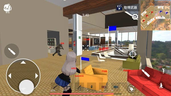 3、左下角摇杆控制移动,右侧准星图标控制瞄准,子弹图标控制开火。