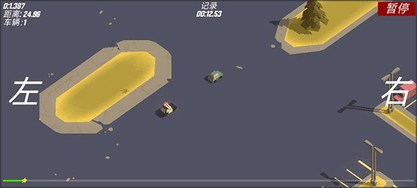 1、轻松点击屏幕左右两侧,即可灵活控制车辆行驶方向,迅速开启这场热血沸腾的赛车冒险。