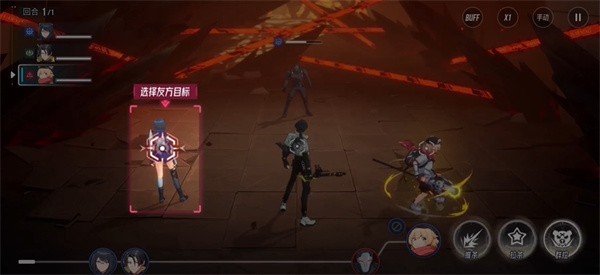 1、打开手游,游戏开始前会有个新手教程,一共可以上阵三个角色,记得好好选择,组成合适阵容。