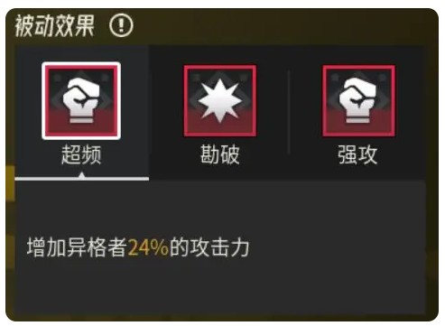 被动技能为增加异格者的属性,可能是固定数值或是百分比,相较于装备词条,还会有百分比增伤、减伤以及速度等特殊属性。被动技能可以后续消耗资源进行单个无限次重构,也就是"洗",重构不仅随机属性种类,也随机属性的级别,比如蓝色百分比攻击3%,红色为7%。此外,被动技能也可以由一件智壳,连同等级和突破一同继承给另一件智壳。