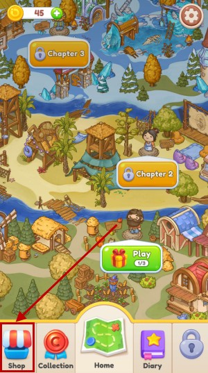 1、玩家返回到屏幕的主界面,点击屏幕下面最左下角的Shop按键。