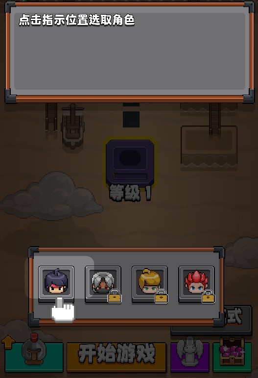 2、点击开始游戏后需要选择英雄,选好英雄后点击进入关卡。