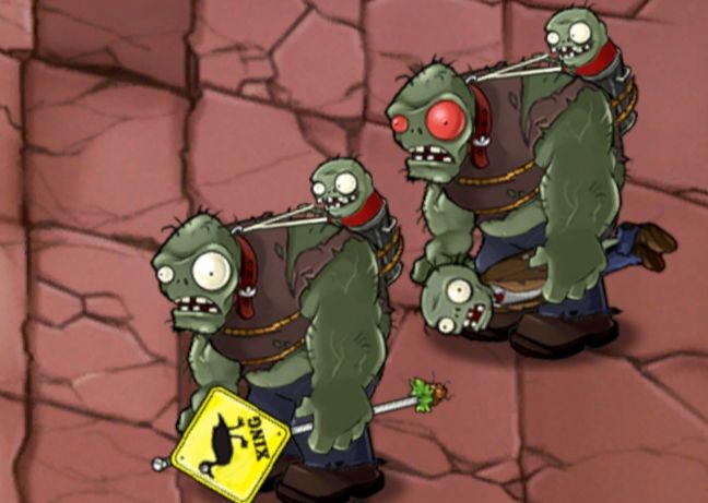 武装巨人:代替难度五4旗的究极僵尸,只出一个12000+48000,移动速度为正常巨人的一半,受到单次伤害不会超过5000,受到控制的时间减半,本体半血时扔出保龄球,砸击地面时随机产生1~3个小鬼僵尸