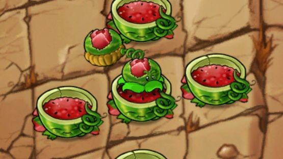 特点:吞噬的全部僵尸,吞咽后吸引范围内上下两行的全部僵尸到本行,每1光照等级降低10秒吞噬冷却,最快为5秒,对其使用大嘴花卡牌会立即刷新吞噬冷却,吞噬后立即回满血