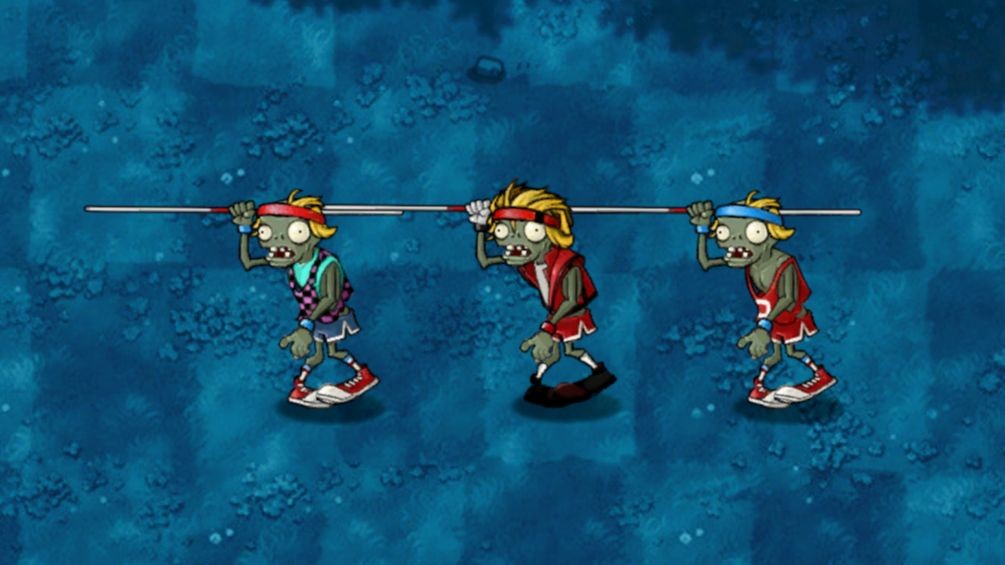 特点:出现一段时间后将手里的三叉戟扔向植物,当碰到植物时若没有扔出三叉戟则会立即扔出,三叉戟只会扔向距离自己3.5格外最近的植物,若扔出三叉戟时没有合适的目标,则三叉戟将会飞出地图,当三叉戟命中植物时,将会对植物造成当前生命值20%的伤害,最低为20