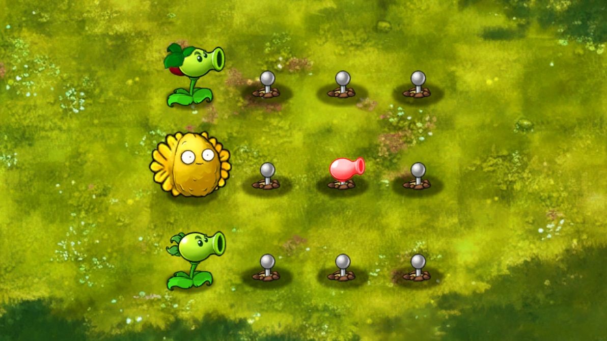 4、进入游戏如图,玩家可以把两个植物种在一个格子上,以此合成一个融合版的植物,如向日葵融合豌豆射手,得到向日葵豌豆射手;
