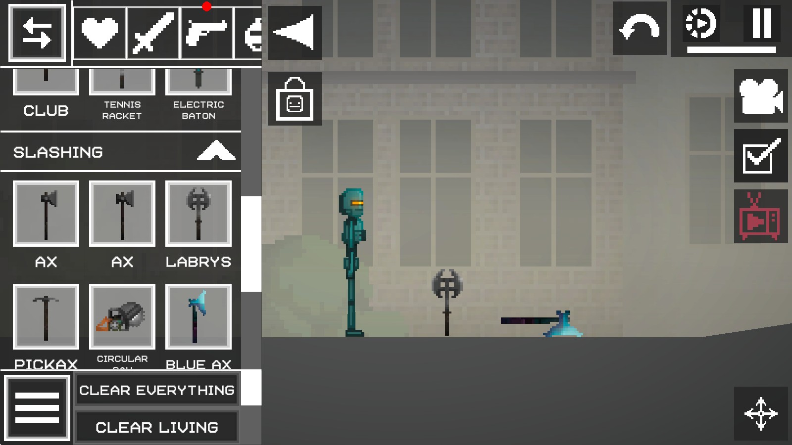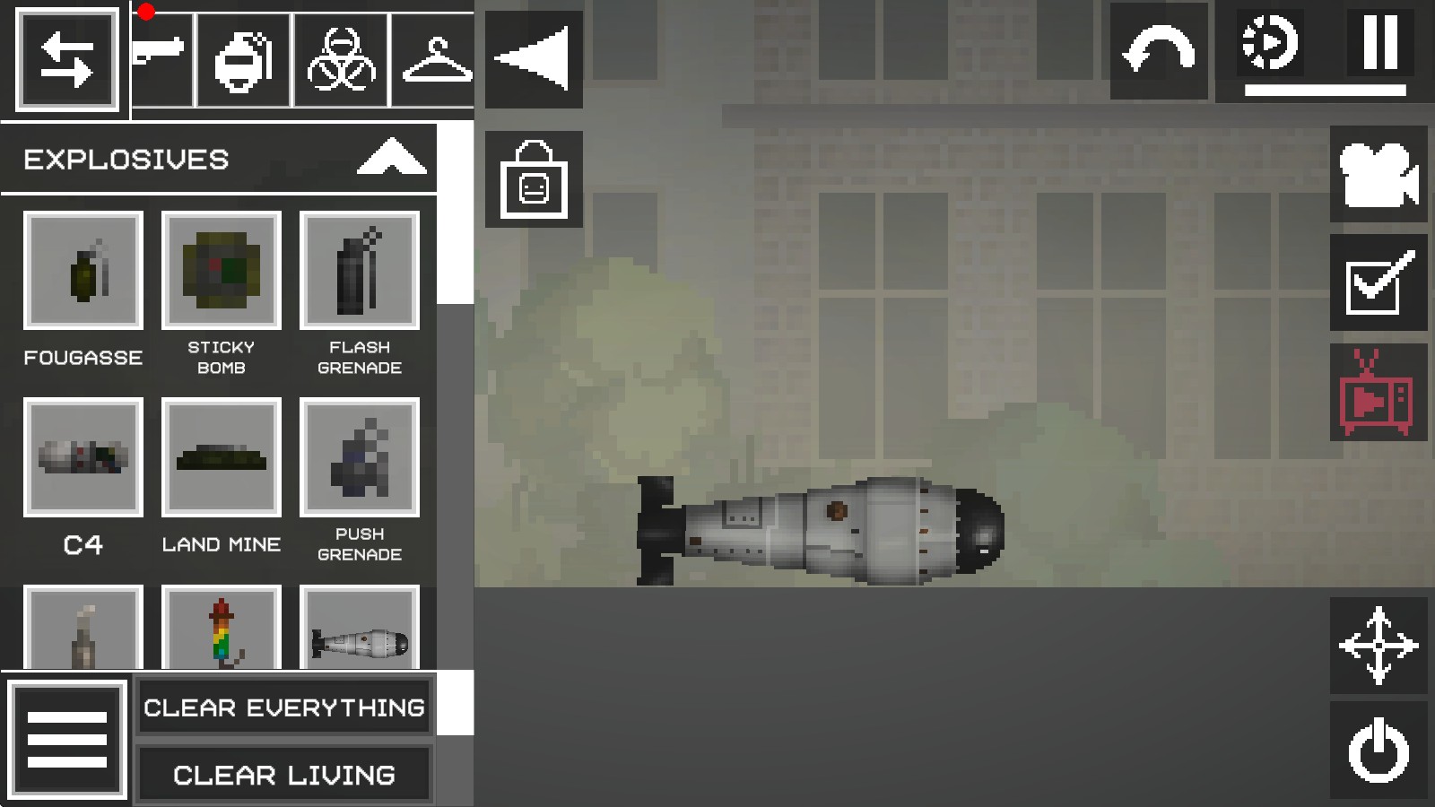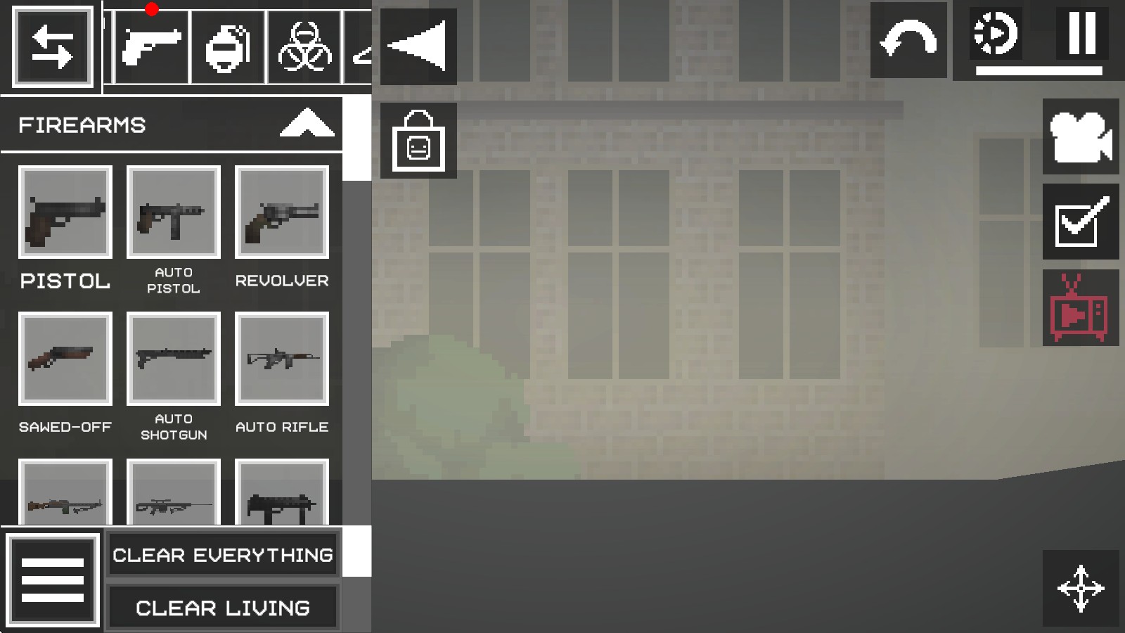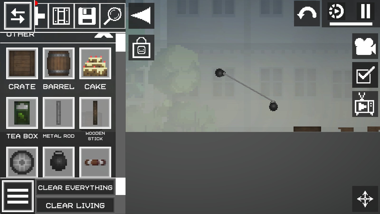 2、进入游戏如图,点击左上角菜单按钮,添加两个物品在地上;