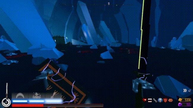 2、水晶洞穴遍布水晶锥体,冷色调,穴道曲折,武器较少,部分怪物有技能难对付