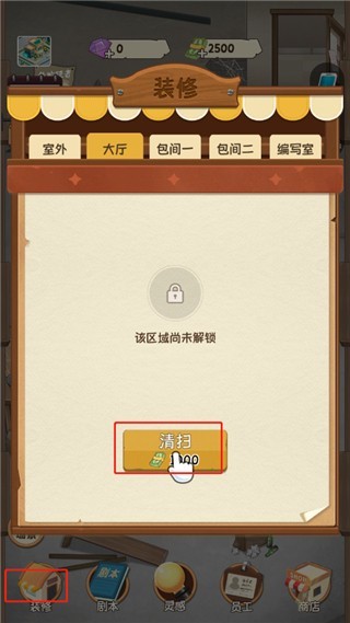6、我们可以看到店面已经干净了,然后向你的合伙人租借剧本,每个剧本都有租借费玩家需要好好经营;