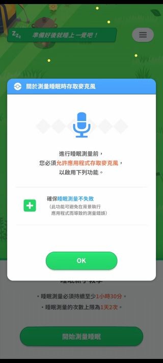 2、授权麦克风的使用权限,将手机放在枕头旁边,确保电量够用且后台不会自动关闭