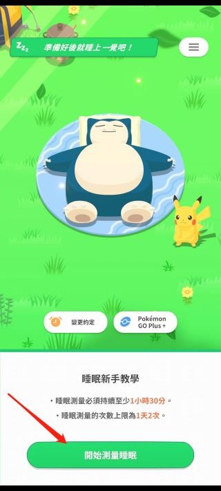 1、在宝可梦sleep首页点击下方【开始测量睡眠】