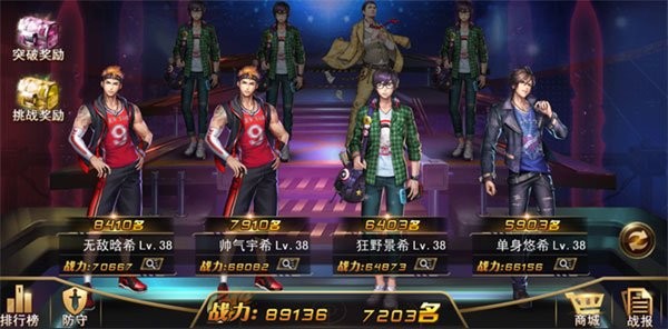 刚进入竞技场时,你会看到四名玩家。他们的排名从右到左依次降低,也就是说,最右边的那位玩家排名最靠前,战力通常也最高(当然,里面也可能混着一些机器人哦)。