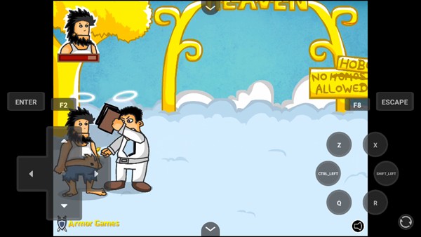 1、游戏玩法和前几作相同,玩家操作不修边幅的流浪汉在天堂中开始冒险,点击play按钮开始游戏
