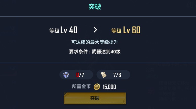 2、武器每20级为一个节点,当满级后,需要消耗武器对应属性的方块和设计图来突破,从而提升最大武器等级。