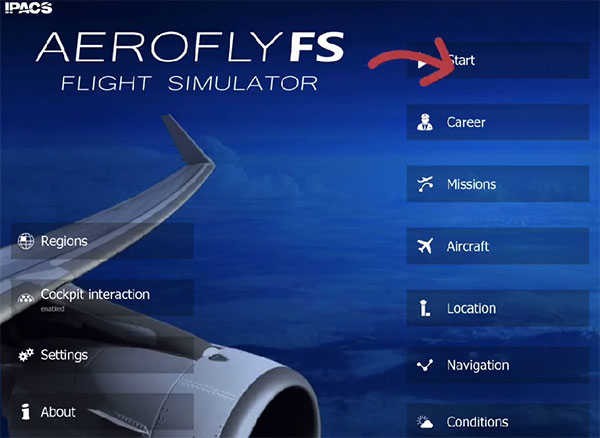 完成设置后,点击首页左上角的“开始”按钮即可进入游戏,开始您的飞行体验。