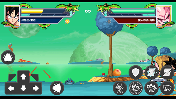 必杀技(如元气弹、终极闪光)以像素风格呈现,保留原作招式特征的同时增加趣味性。
