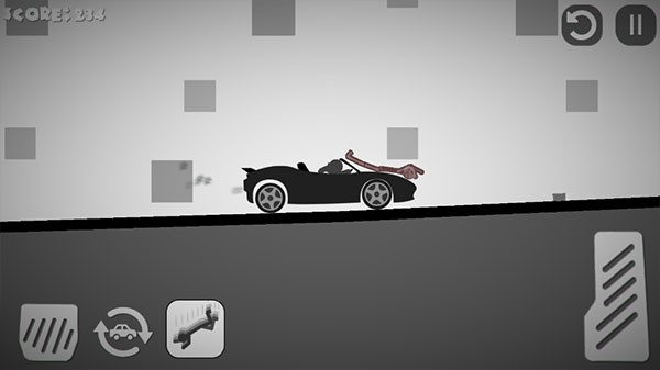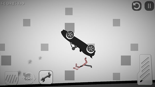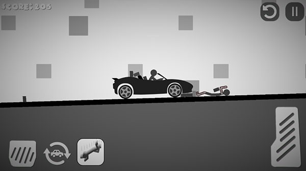 2、本关挑战的是驾驶汽车来撞击火柴人。左下角为刹车,右下角为油门。