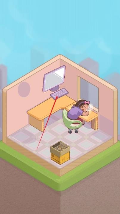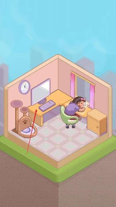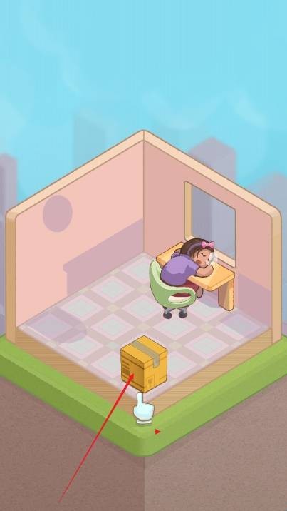 1、进入关卡后,点击房间里的这个箱子就会随机的出现各种家具和物品。