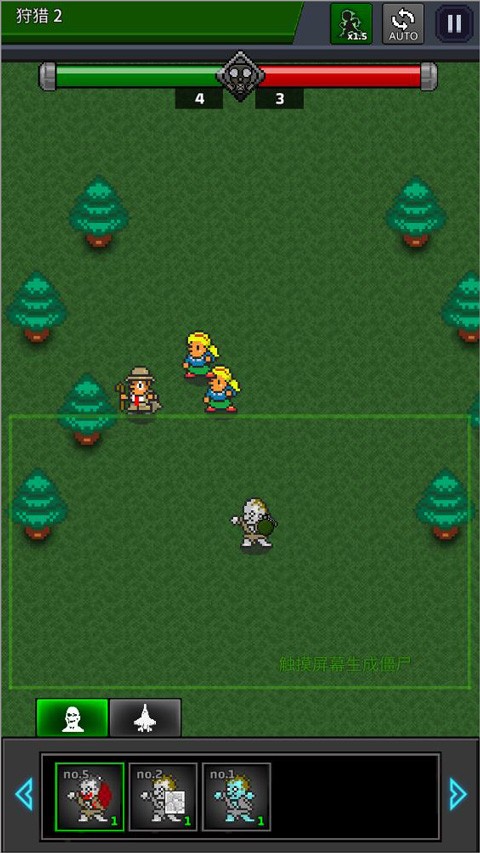 4、点击右下角的狩猎开始冒险,狩猎过程是自动进行的,玩家只需要在绿色方框中点击生成僵尸