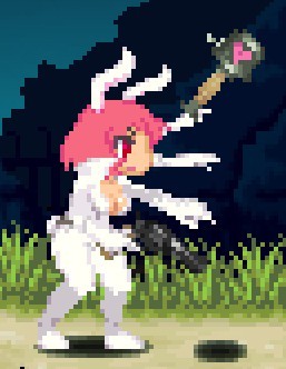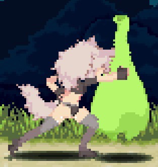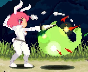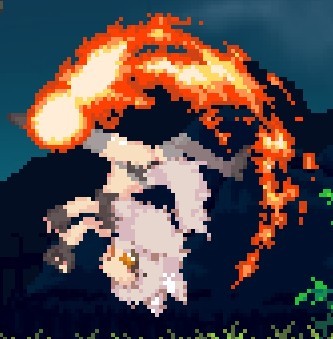 下蹲攻击钩脚(古烈踢),唯一对空稍微能用的招,用来对付例如羽毛哈比或者陨石之类的,可使地面的小型怪打出浮空效果,由于自机对空残念导致实用性不高,可接空中下A攻击