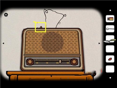 4、我们直接来到火炉室,右下的柜子用钥匙打开,输入密码1487,拿到一只虾!接着柜子上面收音机上方有一个断掉的插头取得,还有火炉上方台子有一卷磁带,放入收音机,取得一团磁带。点开左下方的台灯,插头放上去,用螺丝刀接起来(我第一次知道螺丝刀能接电线。。)接通插头,打开台灯开关(切记:这里一定要去窗户房间把房间的灯关掉!)这时候可以拿到隐藏的相片碎片,拼图完成。