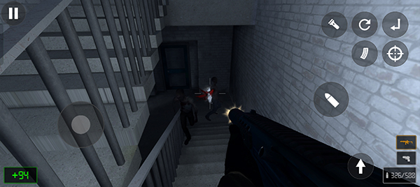 6、在下楼看到僵尸的时候,我们只需要使用枪械守住楼梯口即可;