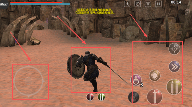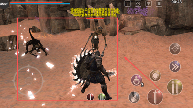 2、左手控制角色移动方向位置,右手按键负责攻击动作和技能释放操作组合。