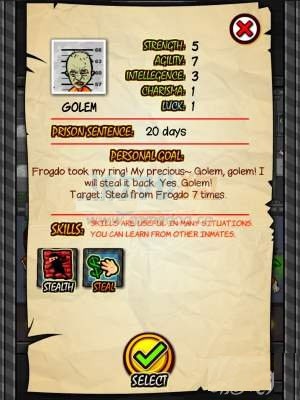 5、GOLEM同样是盗窃入狱但是很明显这是一个大盗,玩家在游戏中选择这个任务会发现金币来的特别的快,什么事情都会跟交易挂钩,喜欢钱和贿赂的玩家可以选择这个人物。