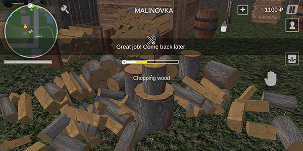 3、进入到了游戏中,环境为很明显的俄罗斯农村场景,左上角为地图,左下角可以控制角色移动,右侧可以打开背包